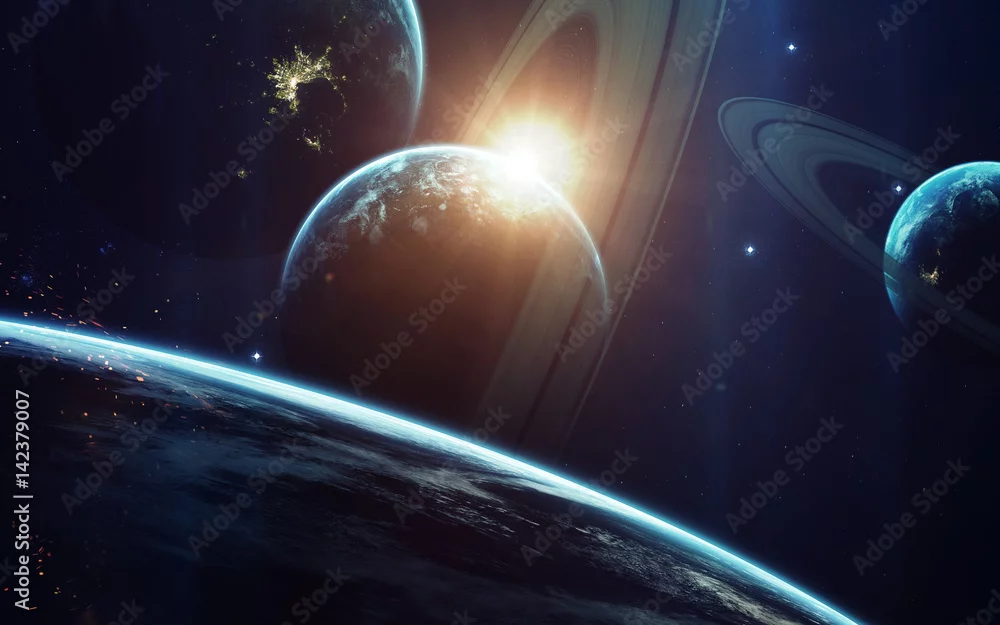 Obraz Tapeta kosmiczna, science fiction. Piękno kosmosu. Miliardy galaktyk we wszechświecie. Elementy tego obrazu dostarczone przez NASA - kosmos - Picturewall.pl
