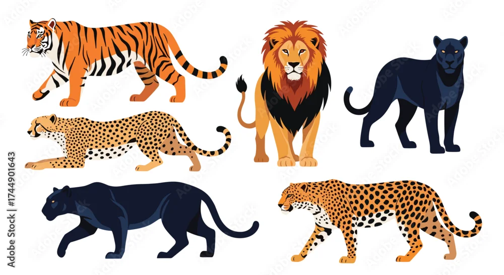 Obraz A vibrant collection of wild big cats including lions tigers leopards and panthers.