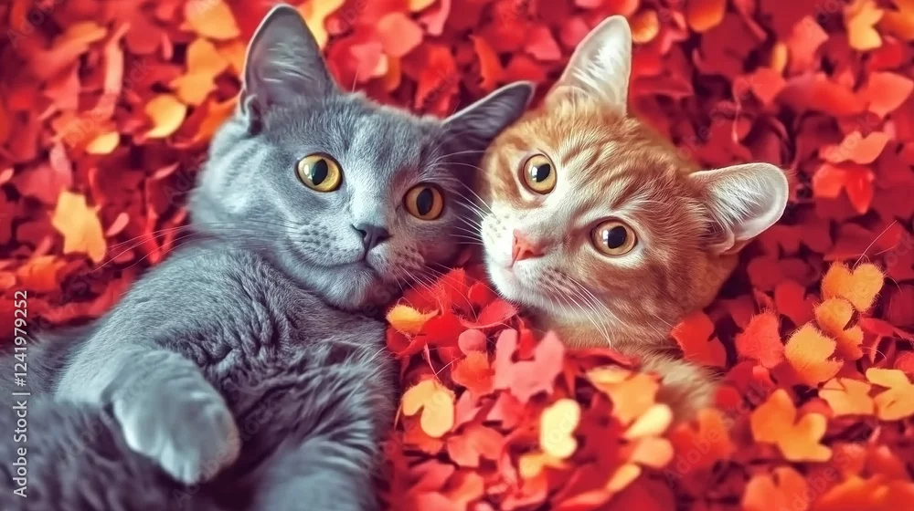 Obraz Dwa zakochane koty i czerwone serce na walentynki