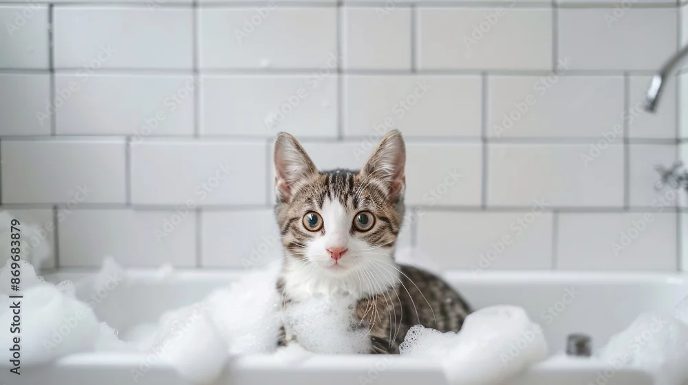 Obraz Kitten in a Bathtub with Bubbles