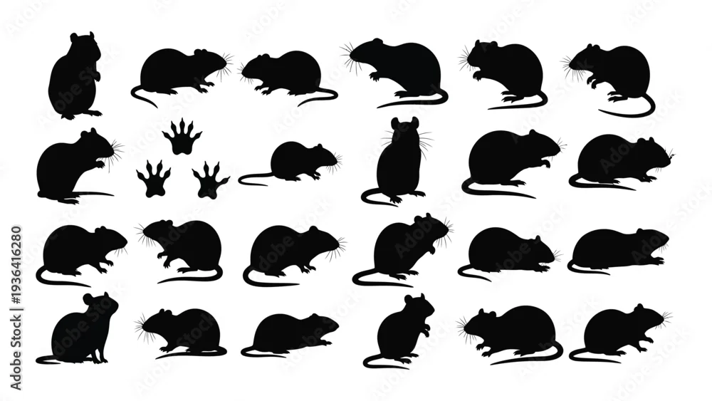 Obraz Collection of cat and mouse silhouettes in various poses - koty - Picturewall.pl