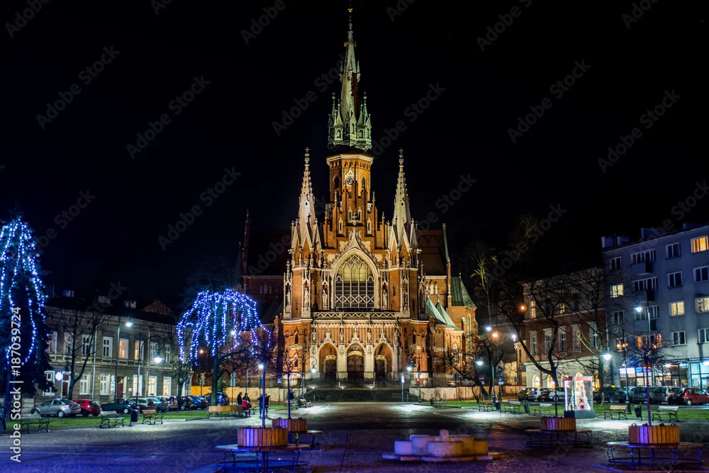 Obraz Kraków, Polska 20 grudnia 2017 r., Kościół św.Józefa w nocy