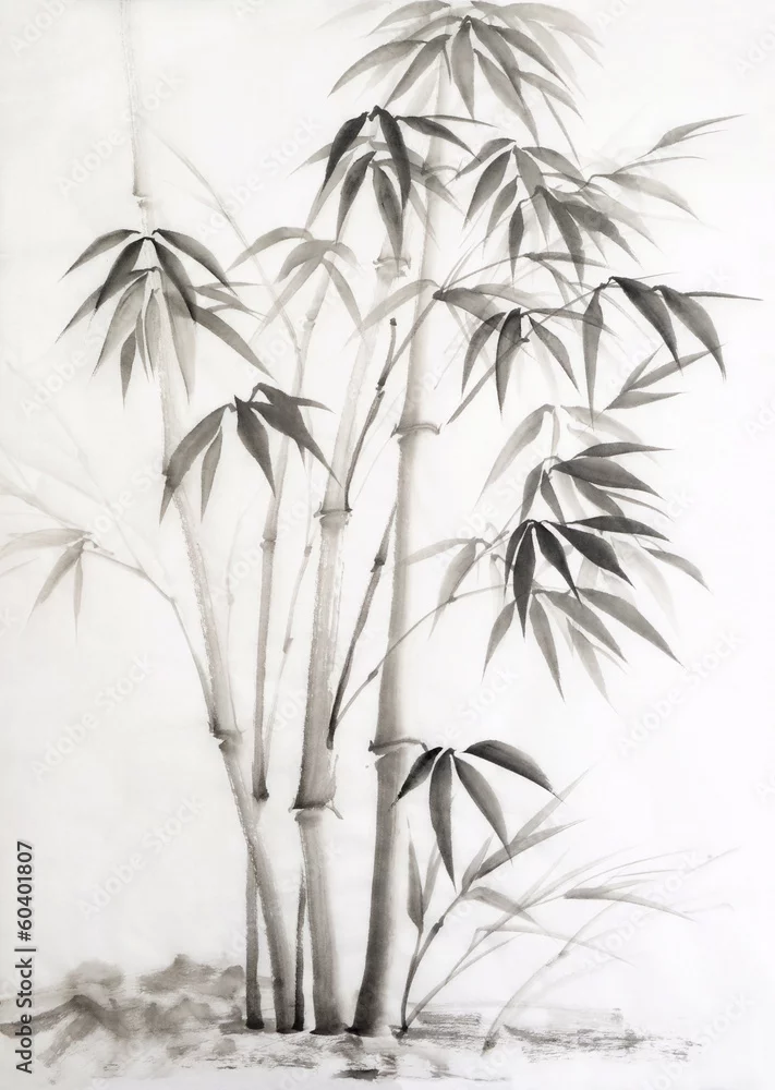 Obraz Akwarela malarstwo bambusa - kwiaty - Picturewall.pl