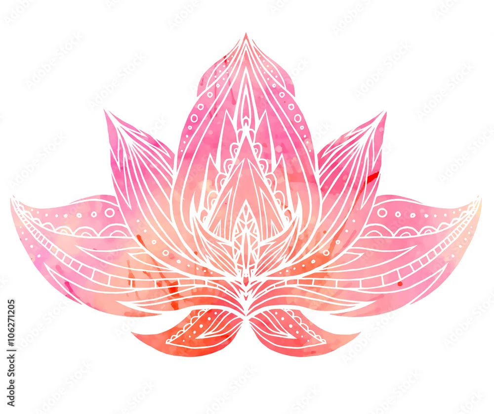 Obraz Kolor Lotus z wzorem boho i tłem akwareli. - kwiaty - Picturewall.pl