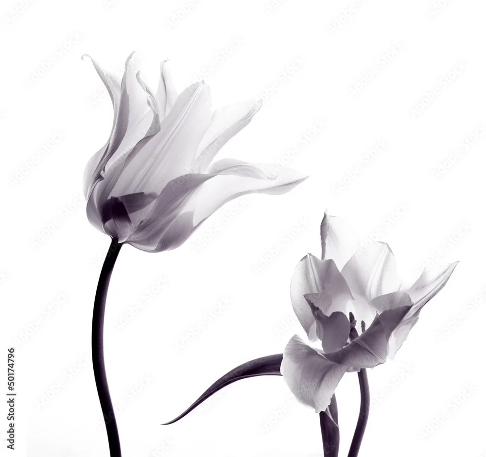 Obraz tulipanowe sylwetki na bielu - kwiaty - Picturewall.pl