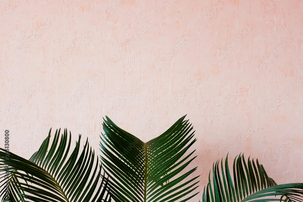 Obraz Palmy przed ścianą - pastelowe kolory - piękna koncepcja lato liści palmowych