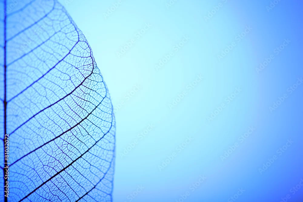 Obraz Zredukowany liść na błękitnym tle, zamyka up