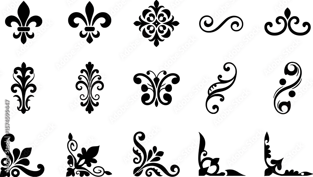 Obraz Black decorative ornamental flourishes and corner accents vector