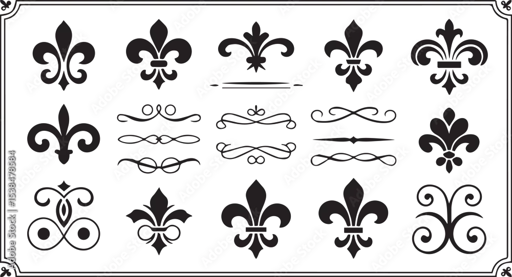 Obraz Collection of fleur de lis and ornate swirls design elements