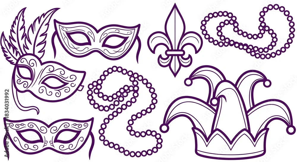 Obraz Collection set of flat, festive icons representing various essential elements and items of the Mardi Gras Festival - lisy - Picturewall.pl