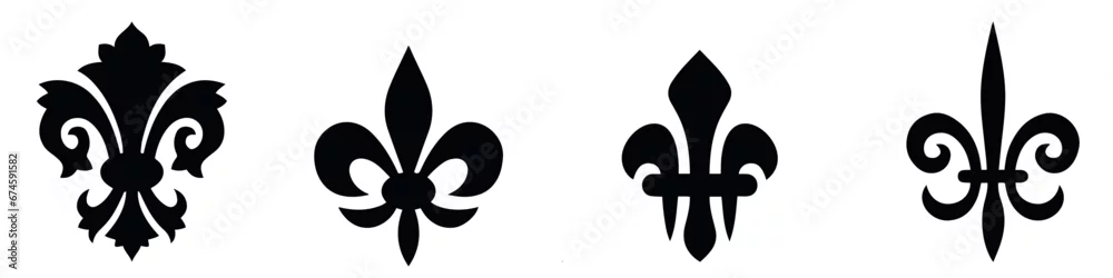Obraz Heraldic lily icons. Fleur-De-Lis icons. Fleur de lis silhouettes. Silhouette style vector icons