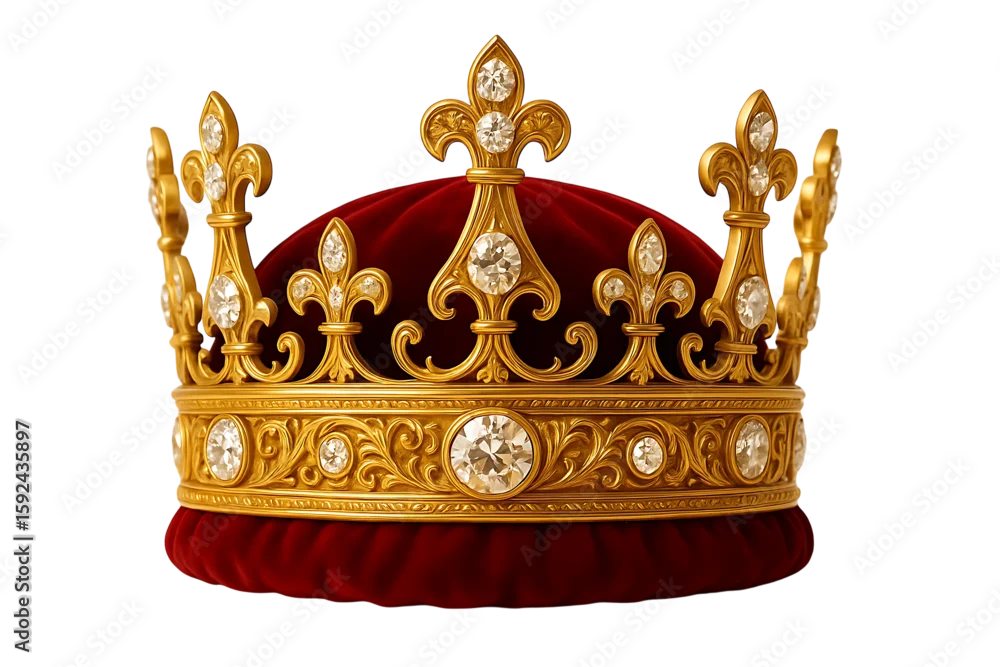 Obraz Ornate gold crown with red velvet and diamonds isolated on transparent background
