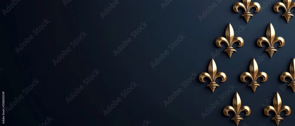 Obraz Seamless regal fleur-de-lis motifs in metallic gold on deep burgundy, refined heraldic luxury pattern, sophisticated European insignia