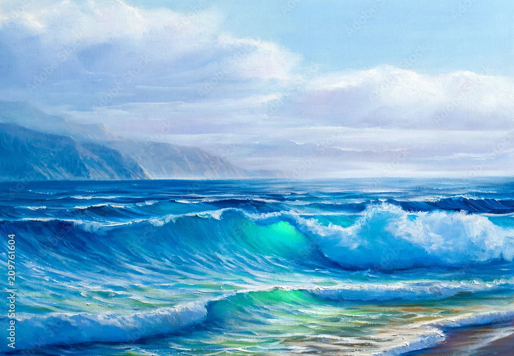 Obraz Zachód słońca nad morzem, obraz olejny na płótnie. - malarstwo - Picturewall.pl