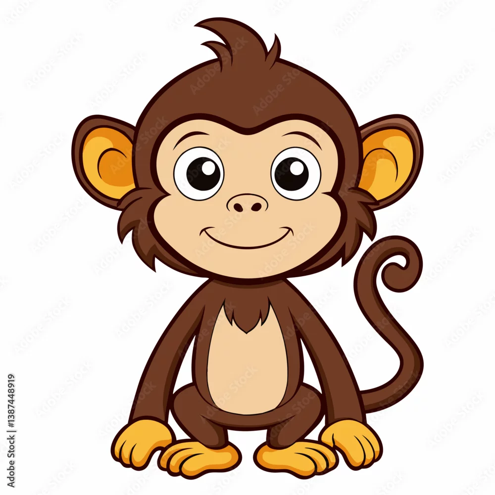 Cartoon cute chimpanzee monkey sitting .Suitable for children's books, sticker, mascot, logo.Front view. Isolated vector illustration on white background