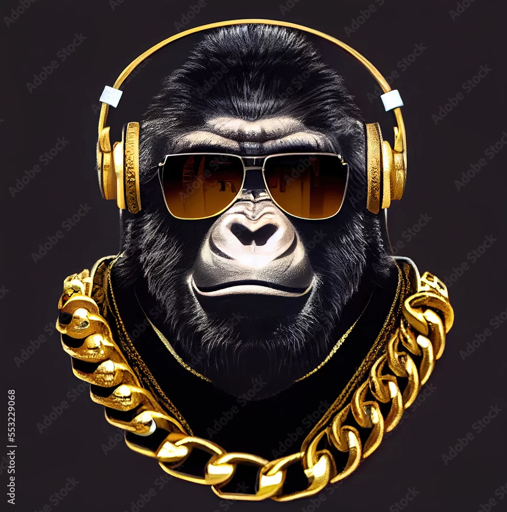 Obraz Cool monkey gorilla Gangsta rapper in sunglasses. generated sketch art. generative AI