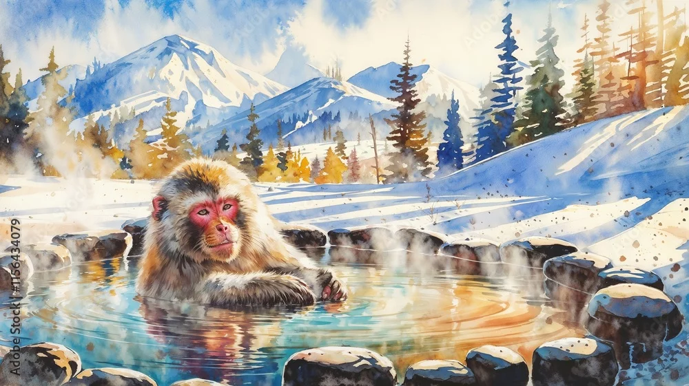 Obraz Japanese snow monkey relaxing in a steaming hot spring