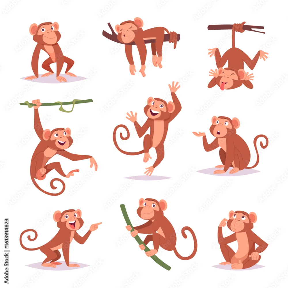Obraz Monkey. Little funny animals wild monkey playing exact vector cartoon template - małpy - Picturewall.pl
