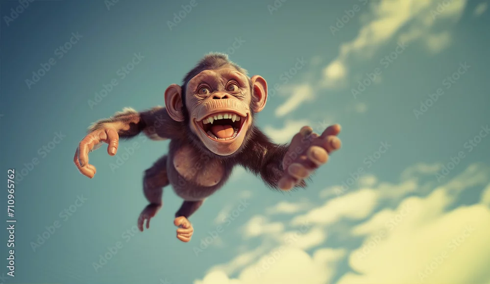 Obraz Single Monkey or Macaca jumping in a flying position. It leaping floats in the air with shock. a monkey was jumping from tree to tree. Common squirrel monkey jumping