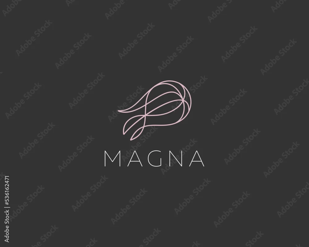 Obraz Abstract jellyfish logo from lines. Universal motion logotype. Vector illustration. - meduzy - Picturewall.pl