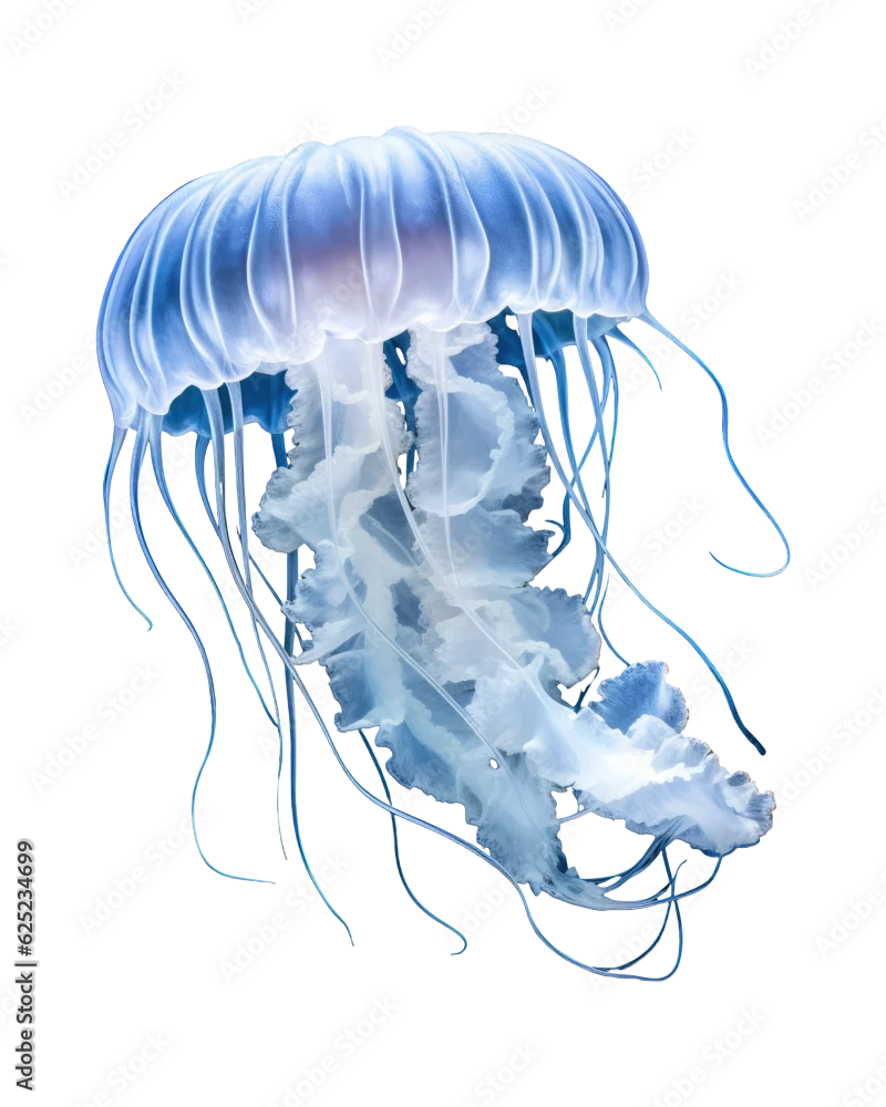 Obraz Blue jellyfish png, transparent background, isolated on white, sea animals - meduzy - Picturewall.pl