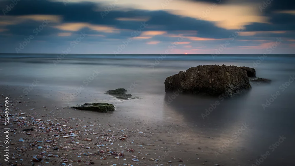 Obraz Długi ujawnienie podczas zmierzchu przy plażą Izrael