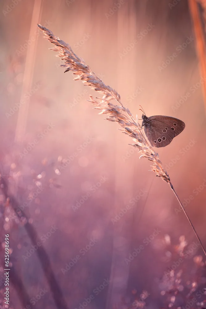 Obraz Brązowy motyl (Aphantopus hyperantus) na słonecznej łące