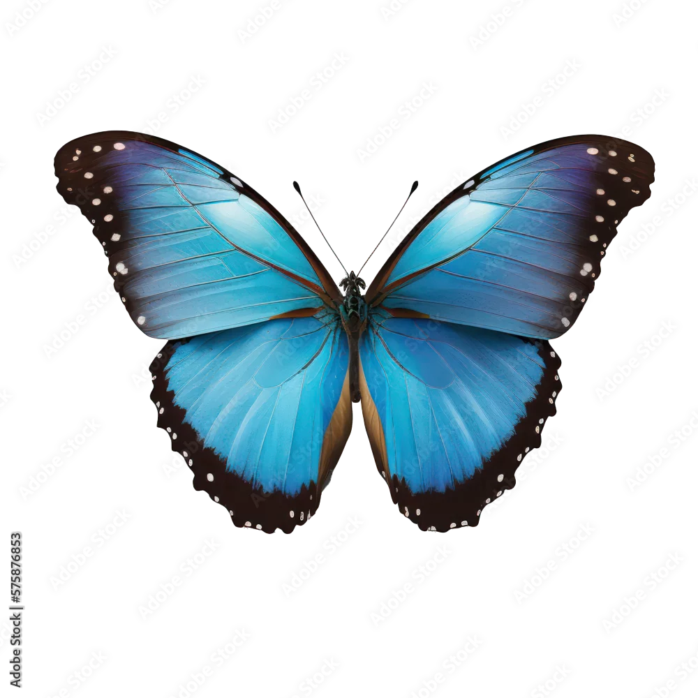 Obraz Papillon morpho blue iridescent d’Amérique du sud Amazonie, détouré, fond transparent