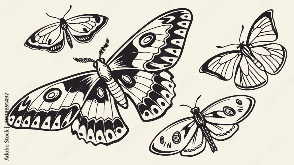 Obraz Vintage etching of four different butterflies and moths in a classic woodcut style.
