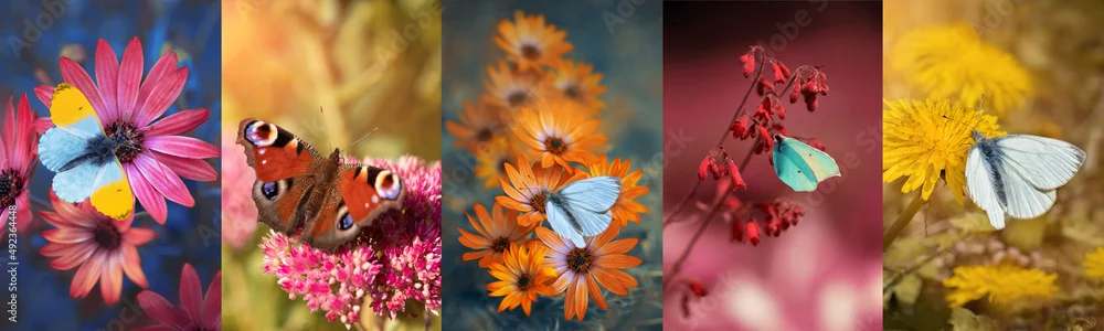 Obraz kolaż wiosenny, motyle na kwiatach