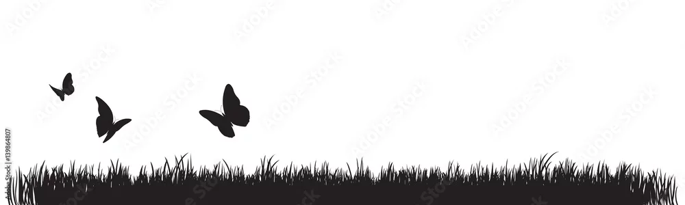 Obraz SILHOUETTE HERBE ET PAPILLONS