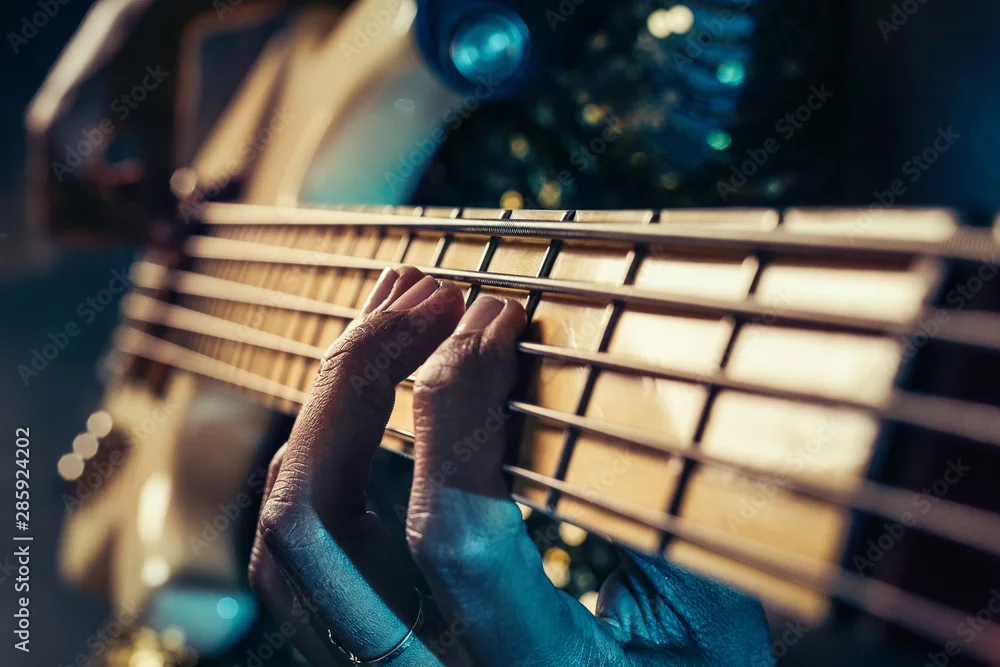 Obraz Zbliżenie fotografia basowej gitary gracza ręki