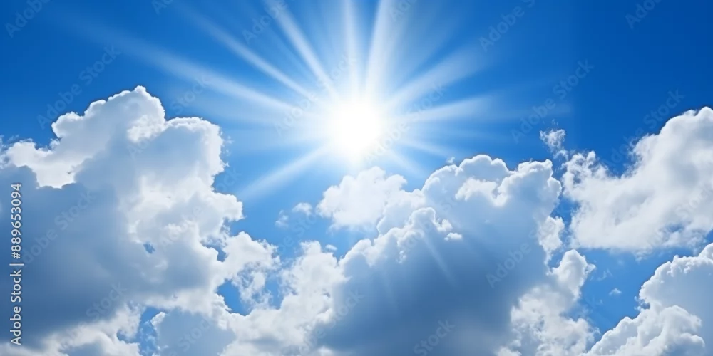 Obraz Błękitne niebo, obłoki i chmury. Tło panoramiczne do banerów, grafik. Rajska przestrzeń.
