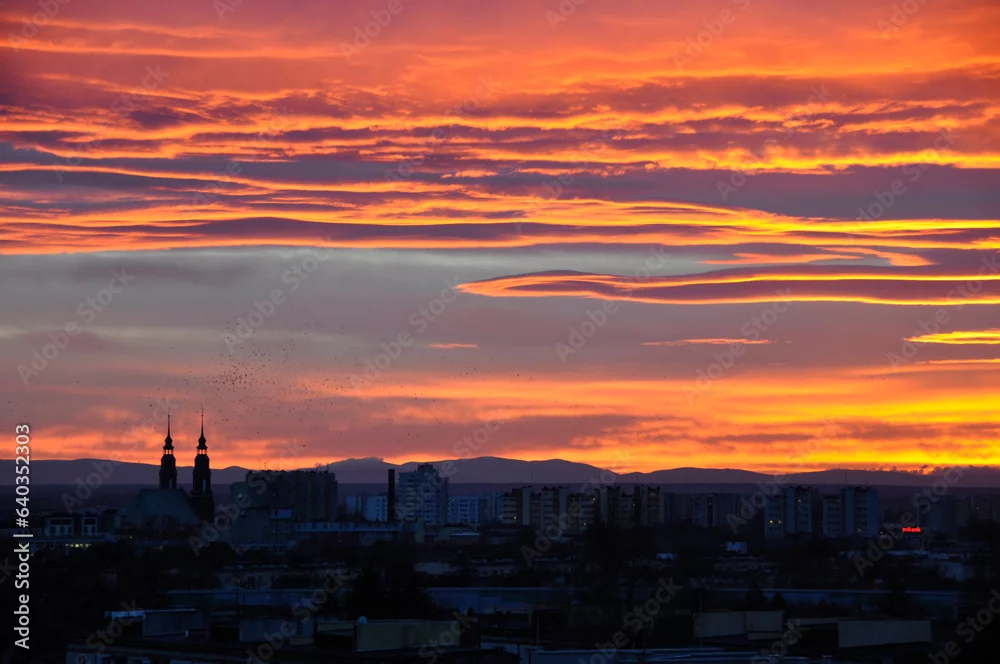 Obraz Czerwone chmury panorama Opola niebo - niebo - Picturewall.pl