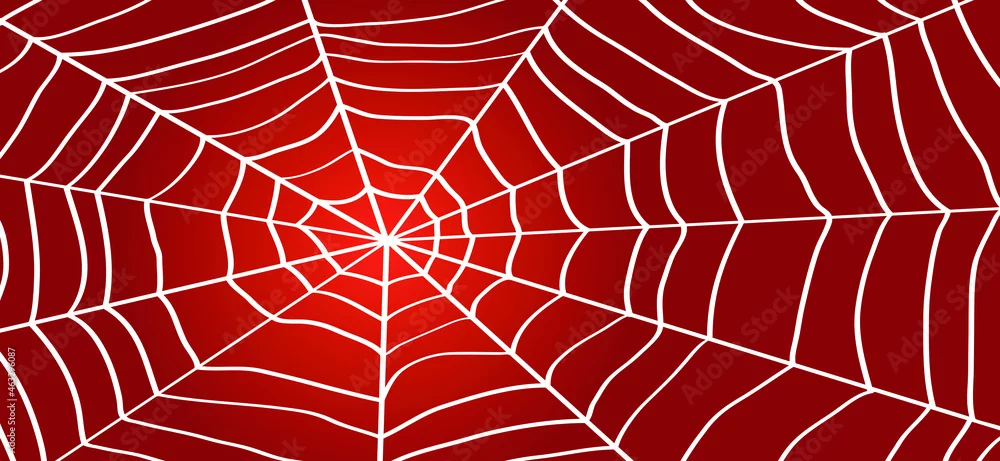 Obraz Cartoon red spider web for happy halloween party, october. Flat vector cobweb background. insect pictogram or logo. Drawing line pattern.