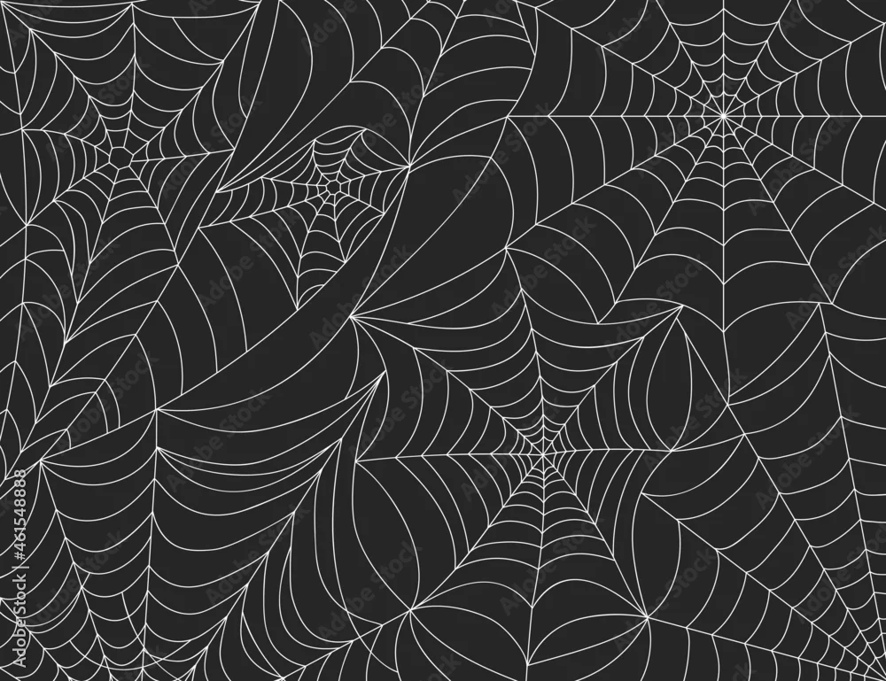 Obraz Halloween spider web background, scary cobweb decoration elements. Spooky spider webs silhouette, horror theme party vector backdrop. Sticky hanging net for gothic fearful holiday event - pająki - Picturewall.pl