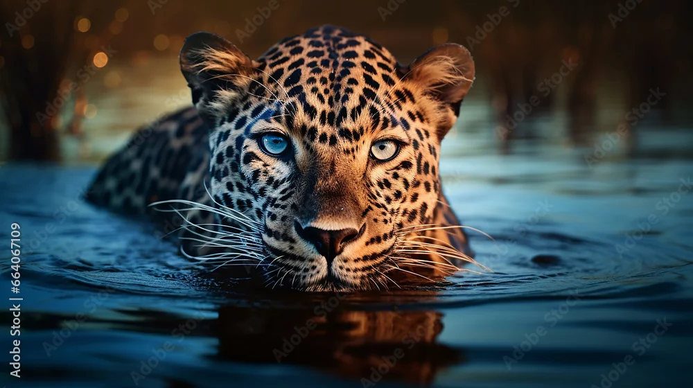 Obraz leopardo no lago - pantery - Picturewall.pl