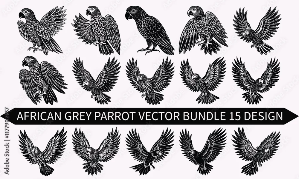 African Grey Parrot Vector Design Artistic icon concept, isolated on white, ideal for t-shirt graphics, digital artwork, and nature-themed projects.