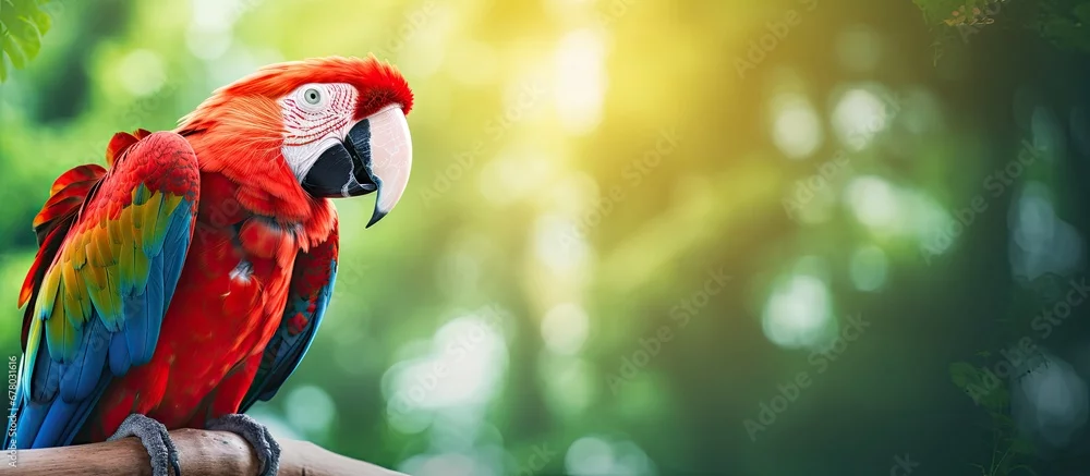 Obraz Colorful Scarlet Macaw parrot in jungle habitat Copy space image Place for adding text or design