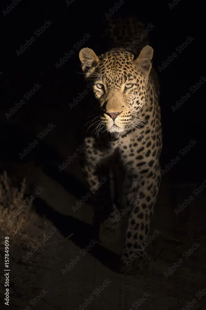 Obraz Portret lamparta odprowadzenie w ciemności polowaniu