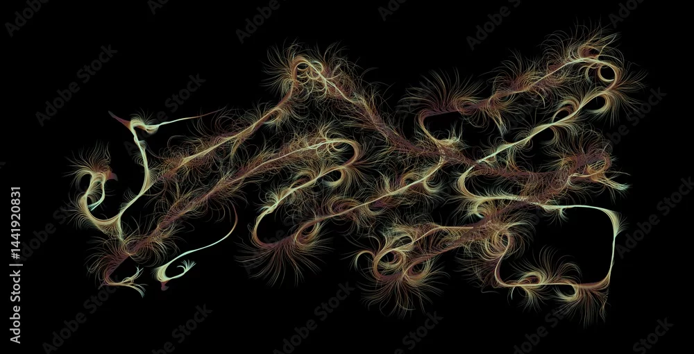 Obraz Abstract beige fiber digital art on black technology background. Bokeh and transparent composition - psy - Picturewall.pl