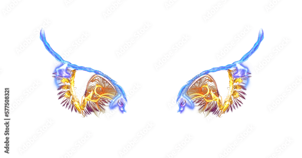 Digital transparent art, abstract a pair of eye, iris eyes glowing lines and sparks. Artificial intelligence concept. Glow futuristic neon hi-tech png