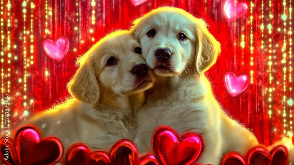 Obraz Dwa zakochane psy i czerwone serce na walentynki