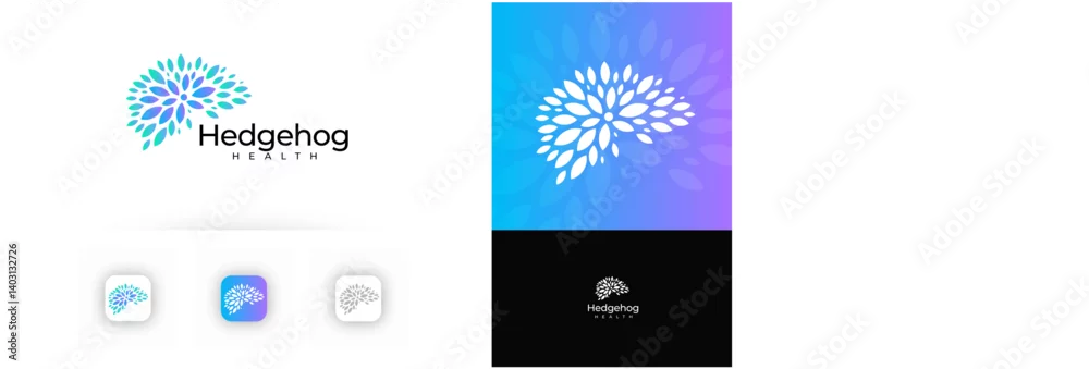 Obraz Mental Health Logo With Abstract Hedgehog Shape Made Of Leaves In Blue Gradient For Wellness, Medical, Nature, Spa, Organic, Eco, Beauty Branding And Psychologist Identity Design. Vector Illustration.