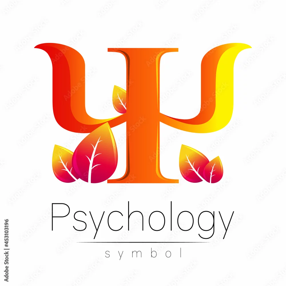 Obraz Modern Vector logo of Psychology Orange Letter Psi with Leaves in Creative style. Logotype in vector. Design concept. Brand company. Isolated on white background. - psy - Picturewall.pl