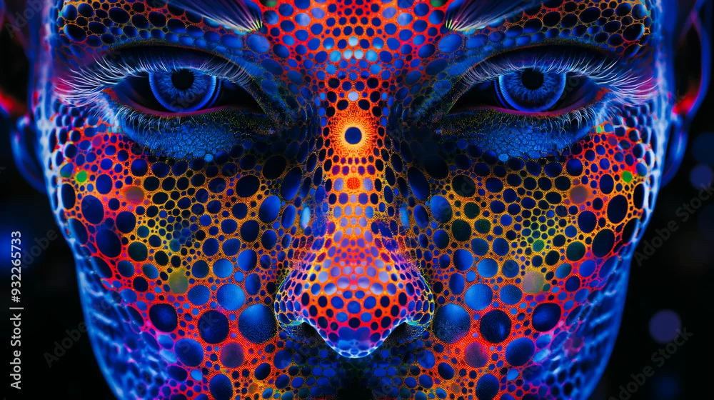 Obraz Universal Cosmic Creature, Inner Being, Consciousness, Serene state of Mind, Meditation, Enlightenment. Vibrant Psychedelic Art, Neon Glow. New Age Soul Punk Trance Music Album Cover, Postcard, Poster