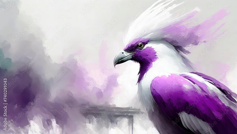 Obraz Egzotyczny biało fioletowy ptak abstrakcyjny