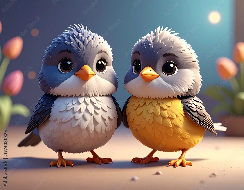 Obraz Małe ptaszki jako figurki do zabawy dla najmłodszych - ptaki - Picturewall.pl