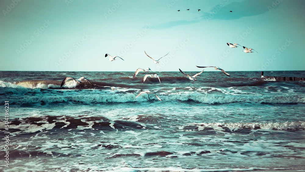Obraz mewy i rybitwy ptaki nadmorskie na plaży
