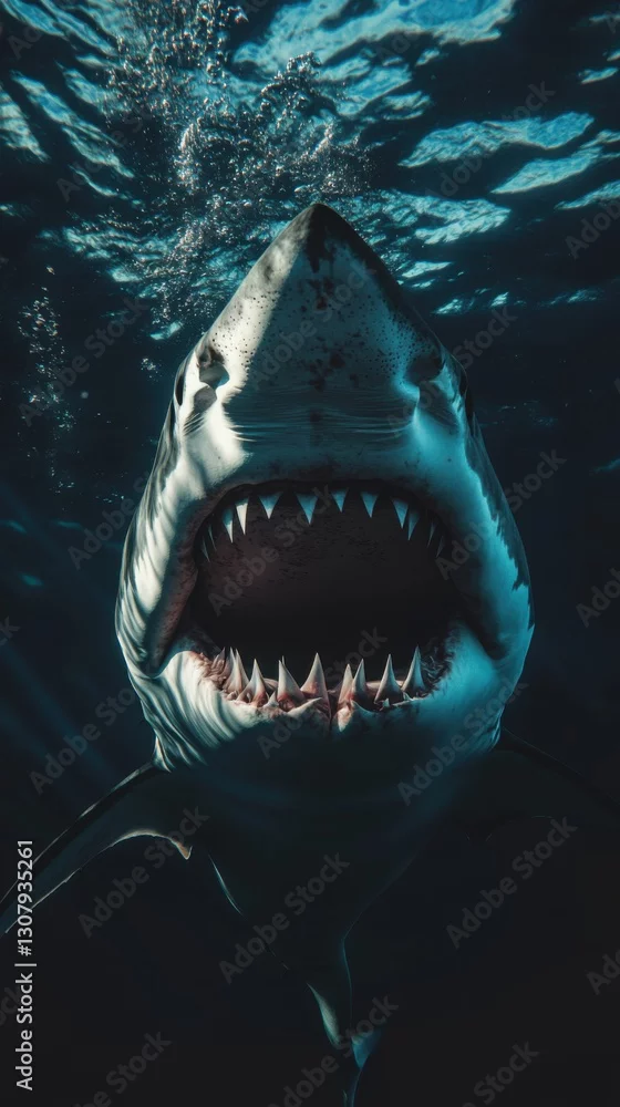 Obraz Rekin biały pod wodą z otwartą paszczą